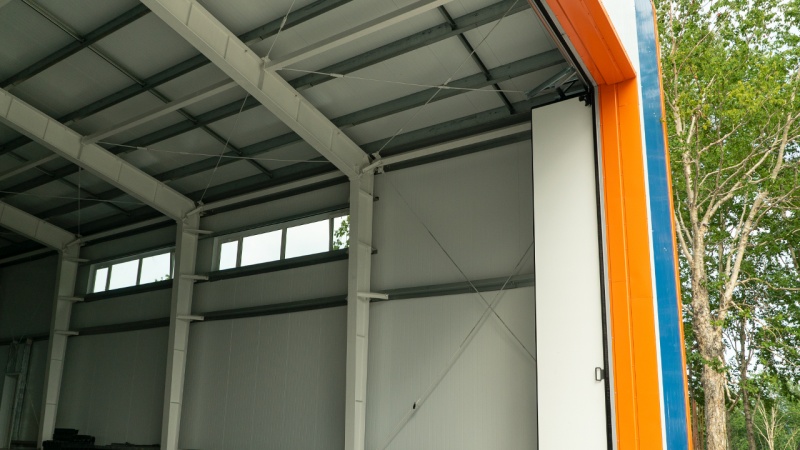 Заполнение проемов – оконные блоки ПВХ, ворота промышленные складные, ворота промышленные секционные из сэндвич-панелей и утепленная металлическая дверь.