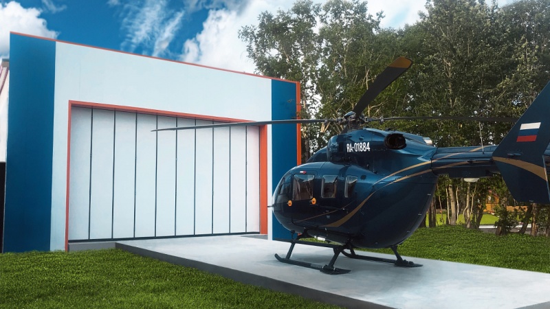 Проектирование и строительство выполнено с учетом сложной сейсмической и климатической зоны. Теплое стационарное здание со складными воротами для хранения и обслуживания вертолетов. Яркий и функциональный дизайн здания, отвечающий всем требованиям Заказчика.
