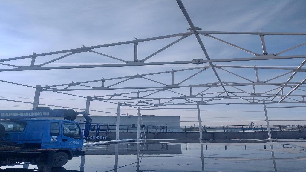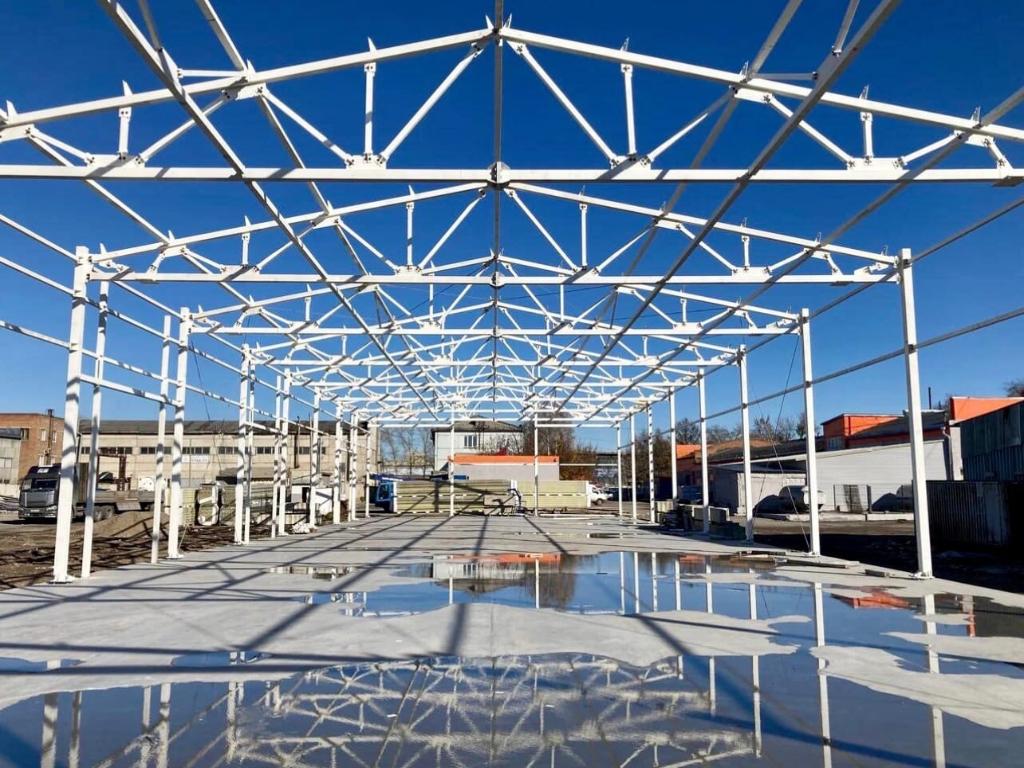 Нами была разработана рабочая документация и параллельно, не теряя времени, была осуществлена поставка комплекта здания на объект и выполнен монтаж фундамента. Конструктивная схема: здание стальное каркасное однопролетное (одноэтажное).