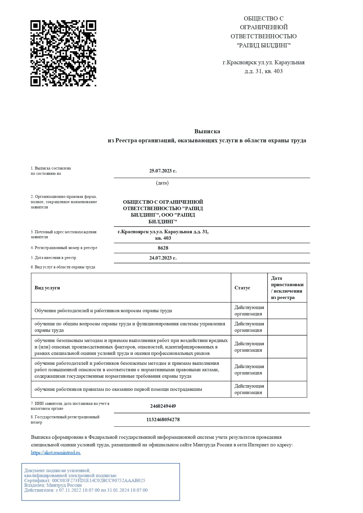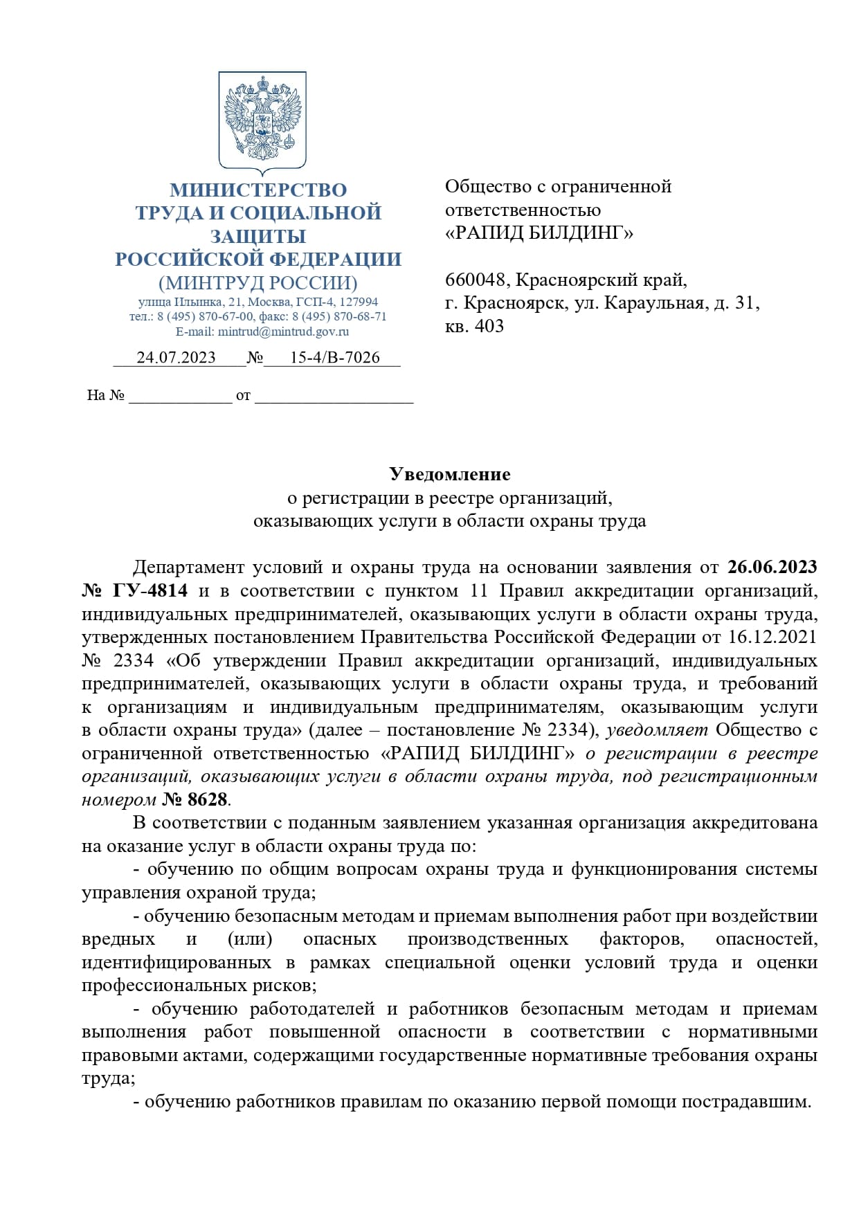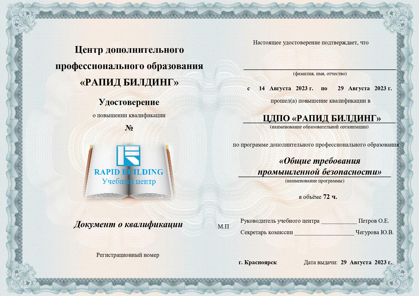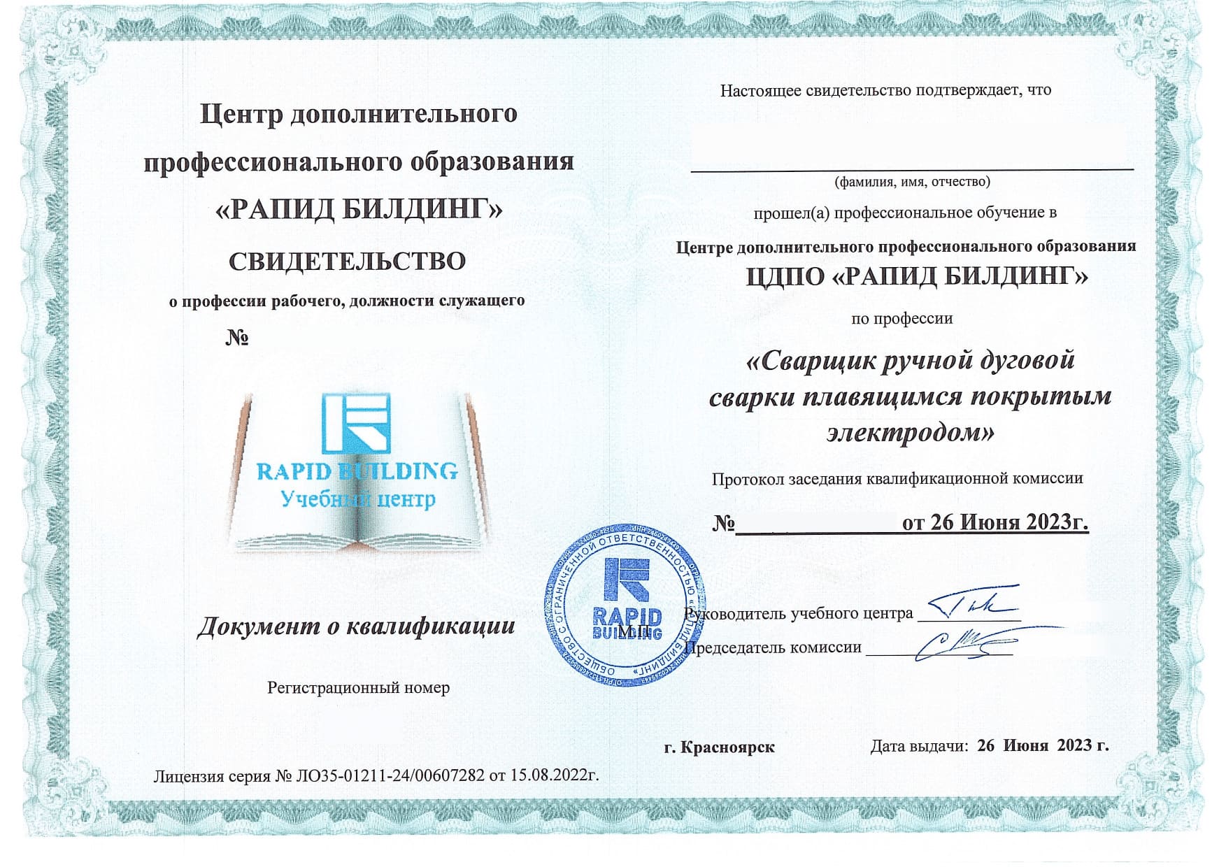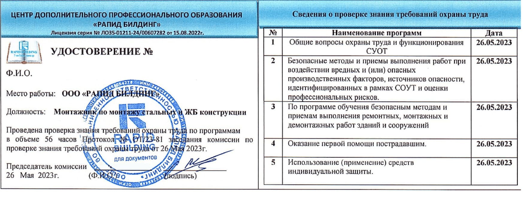 ООО «Рапид Билдинг» аккредитована и осуществляет обучение: