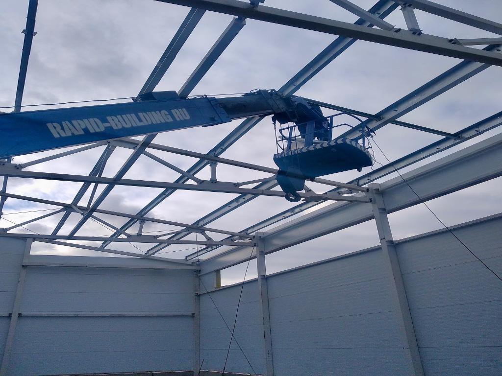 Нами была разработана рабочая документация и параллельно, не теряя времени, была осуществлена поставка комплекта здания на объект и выполнен монтаж фундамента. Конструктивная схема: здание стальное каркасное однопролетное (одноэтажное).