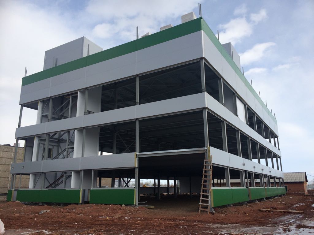 1. Каркасные здания. Для данного вида воздвигаются металлические каркасы. После этого, каркас покрывается специальными панелями для утепления. Эти здания не нуждаются в массивном фундаменте. Помимо этого, они ремонтопригодные.