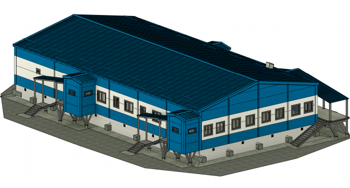 - наружные стены выполнены из сэндвич-панелей 250 мм RAL 9003/9003, RAL 5005/9003;