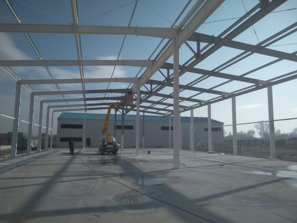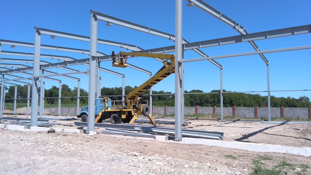 Из элементов заводского изготовления, соединяемых между собой болтами. Колонны устанавливаются на анкерные болты в фундаменте. Основные элементы каркаса: колонны, ригели, балки покрытия, сварные двутавровые, переменного или постоянного сечения, сталь С 345 (09Г2С). С покрытием - алкидной грунт краской 120 мкр. |